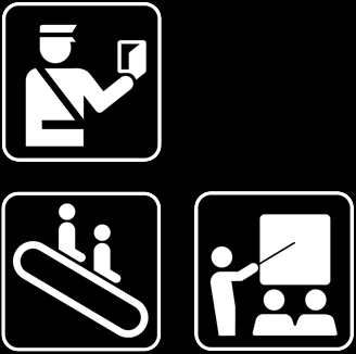 Samtlige piktogrammer i er udført i positiv og negativ tegning. De kan anvendes på folie til opklæbning på metal eller på akryl med lysende billedtegn og følger i deres billedindhold ISO standard. |